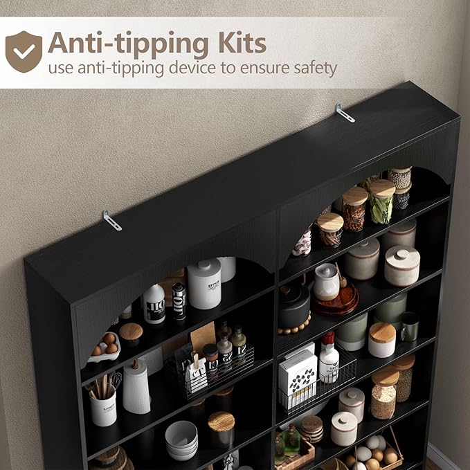 70.8’’ Tall Bookshelf and Bookcase of 2 pcs, 7-Tier Double Wide Bookcase Modern Large Open Display Shelves with Curved Baffle for Home Office Living Room (Black-2pcs)