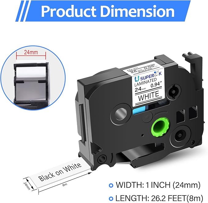 - USUPERINK compatible for Brother p-touch label tape TZe-251 TZe251 TZ-251 TZ251 AZe-251 1 inch 25mm 0.94'' laminated white tape