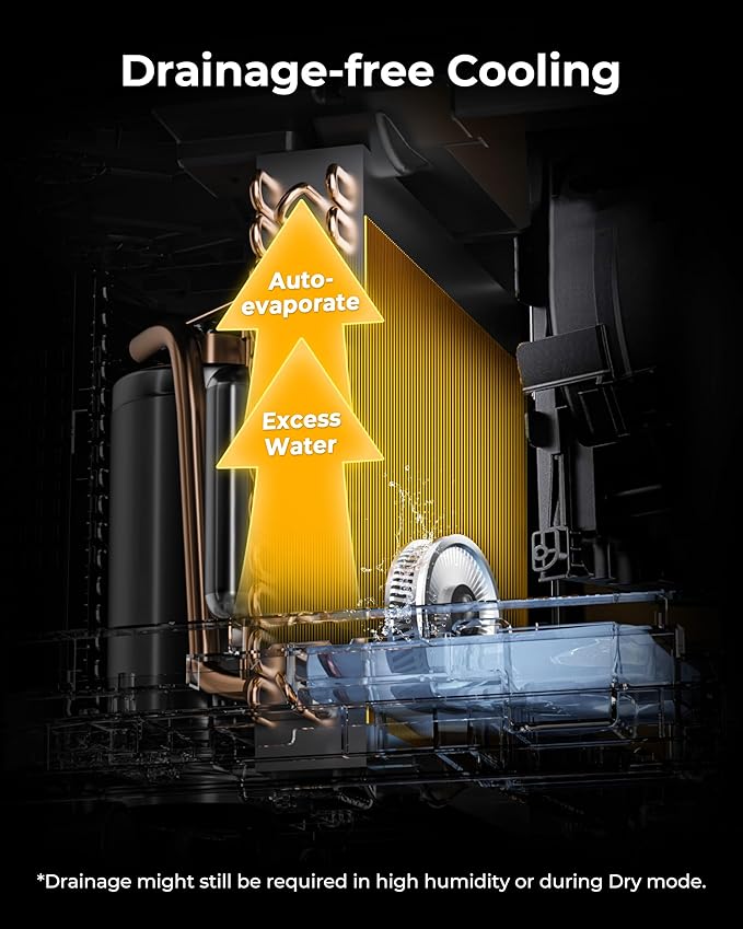 - 𝐍𝐨 𝐖𝐨𝐫𝐫𝐲 𝐃𝐫𝐚𝐢𝐧𝐚𝐠𝐞: This portable air conditioner is equipped with an automatic drain function, which can drains condensed water through a built-in hose, eliminating the trouble of manually pouring water. You can connect the drain hose directly to your home sewer or lead it to a water container (such as a bucket). The ac's filter adopts a quick-release design, and no tools are required for maintenance - just remove the filter and rinse it with water