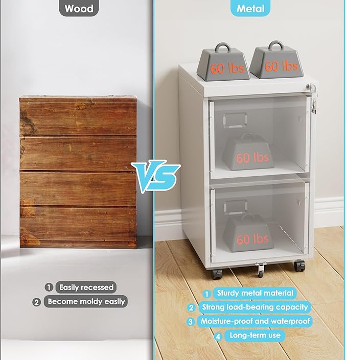 - 【Ease of Cleaning】Due to their metal surface,2 drawer file cabinets are easy to clean and maintain. They only require a damp cloth or cleaning agent to wipe them down.